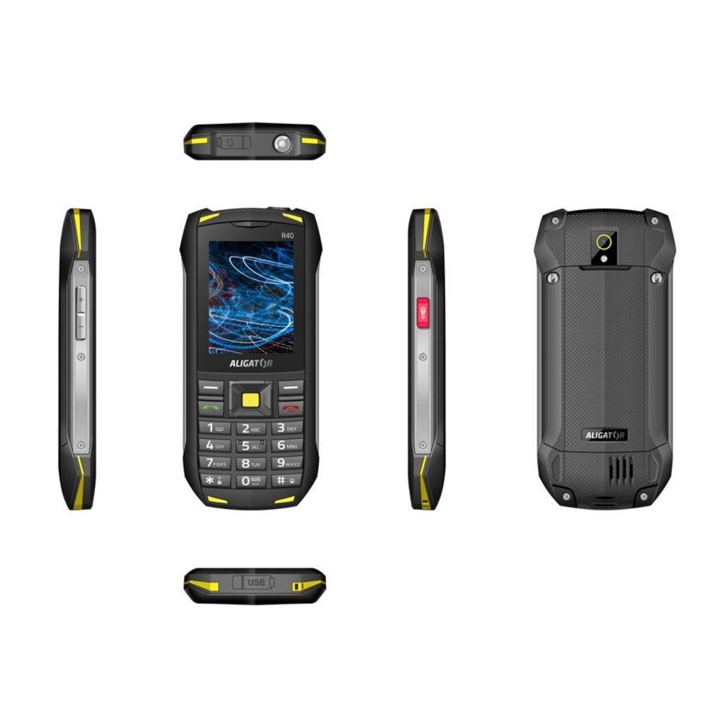 | Obsah oficiálního balení | Telefon Aligator R40 eXtremo, cestovní USB nabíječka, datový a nabíjecí kabel, uživatelská dokumentace a kompletní návod k použití |